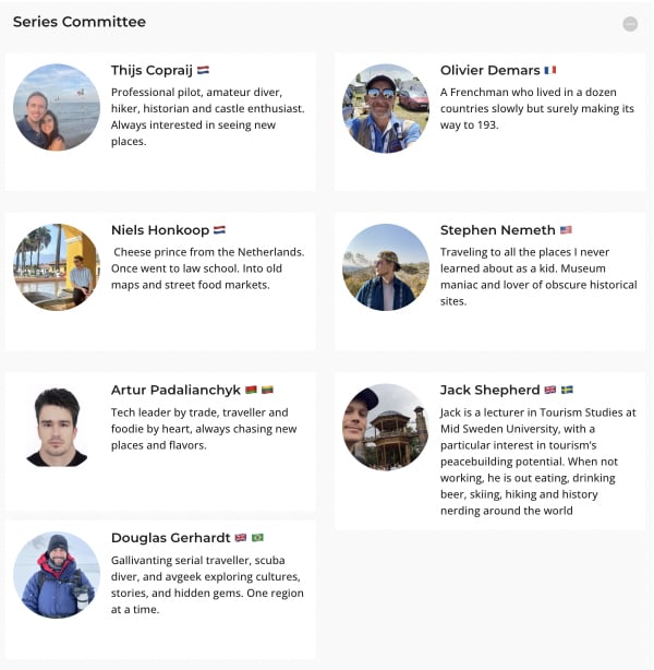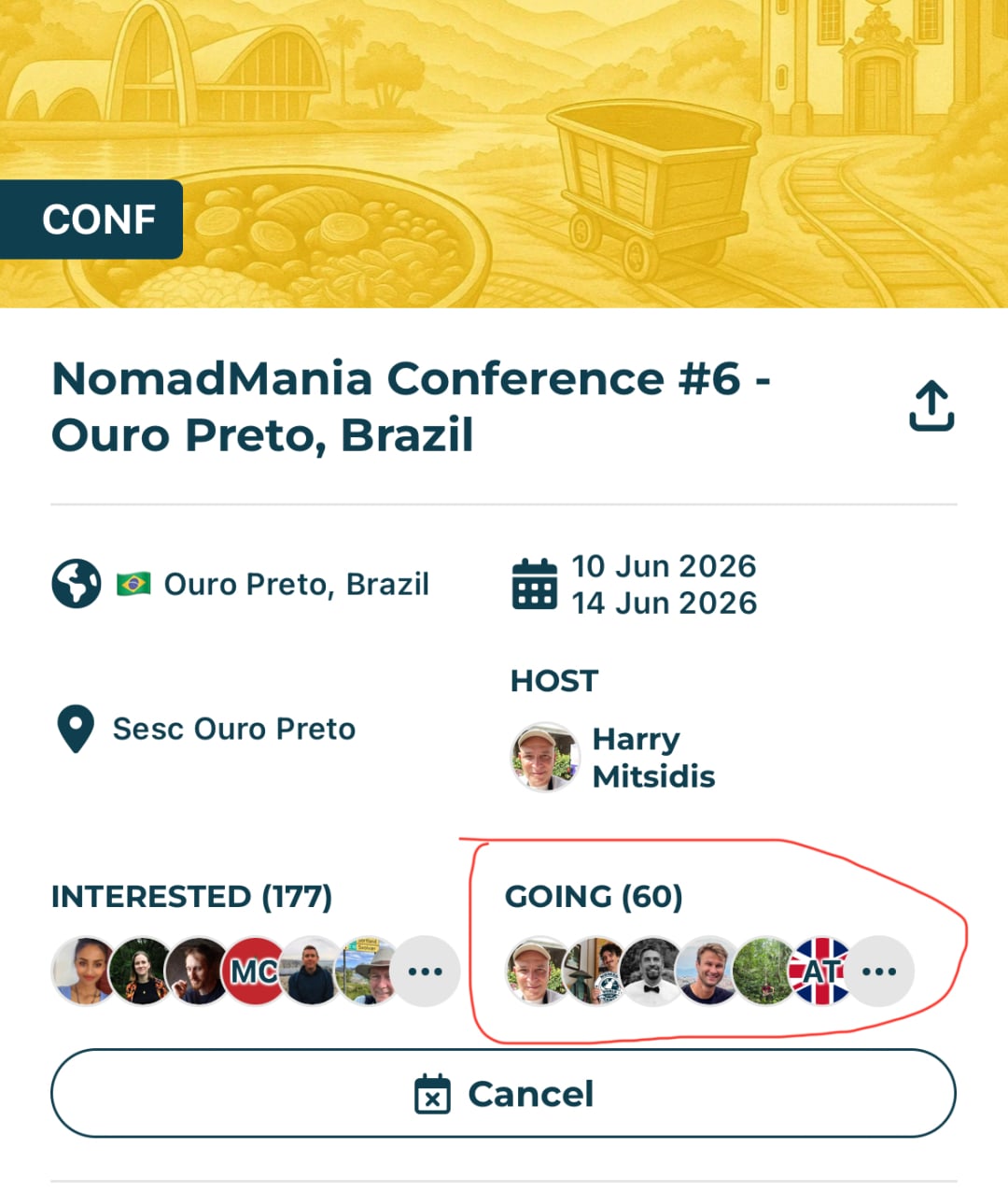 For instance, you can now see who’s attending our upcoming Conference 6 in Ouro Preto, Brazil. These are travellers who have already paid their event deposit — an option that was previously available exclusively to our Premium Members.