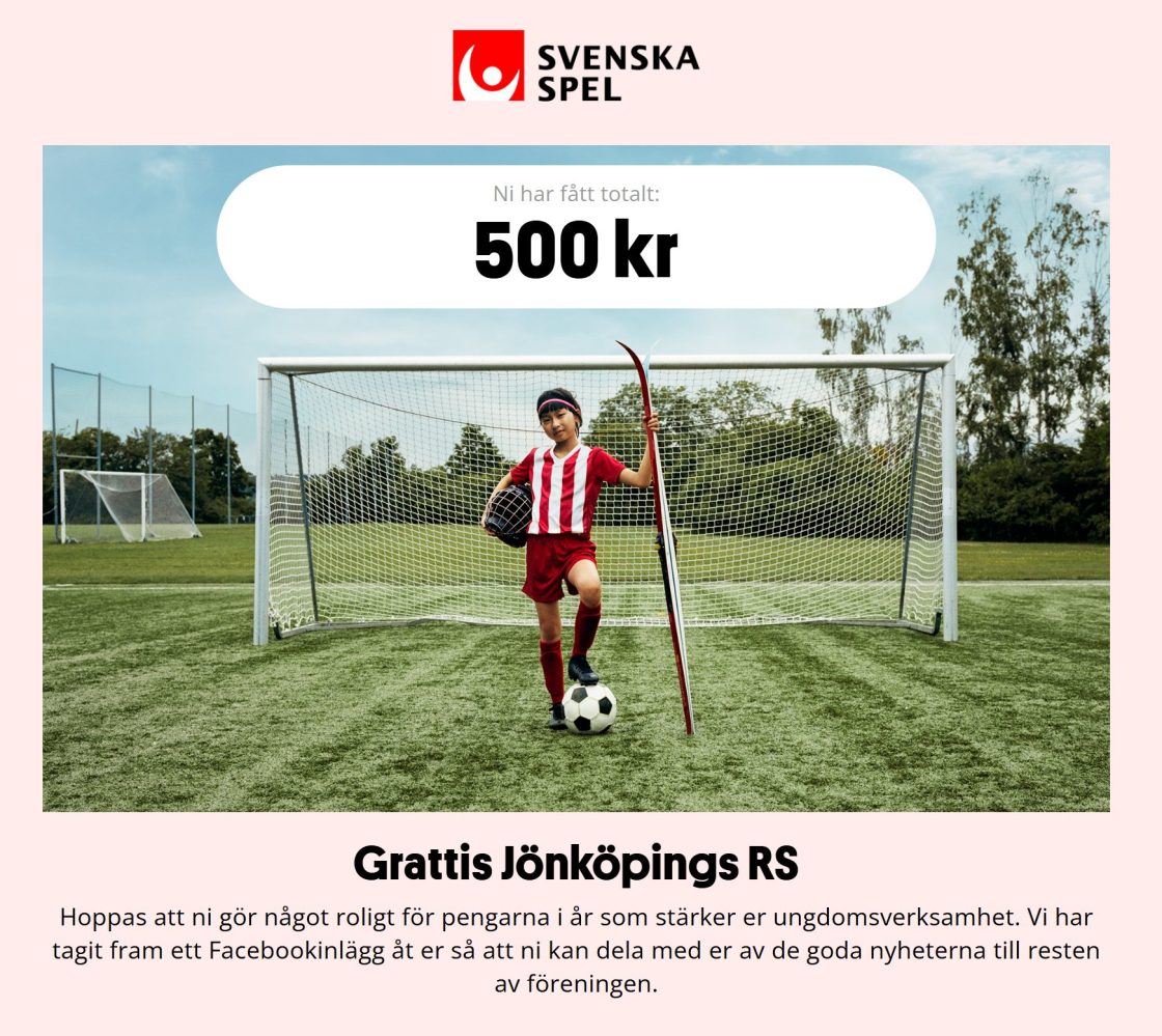 Vi har valt att erbjuda Hemmavinsten – ett lokalt prenumerationslotteri i Jönköpings Kommun där både prenumerant och förening blir vinnare. Vi hoppas att du som medlem vill stötta oss varje månad och ta del av den lokala spänningen. Så här ser det ut: