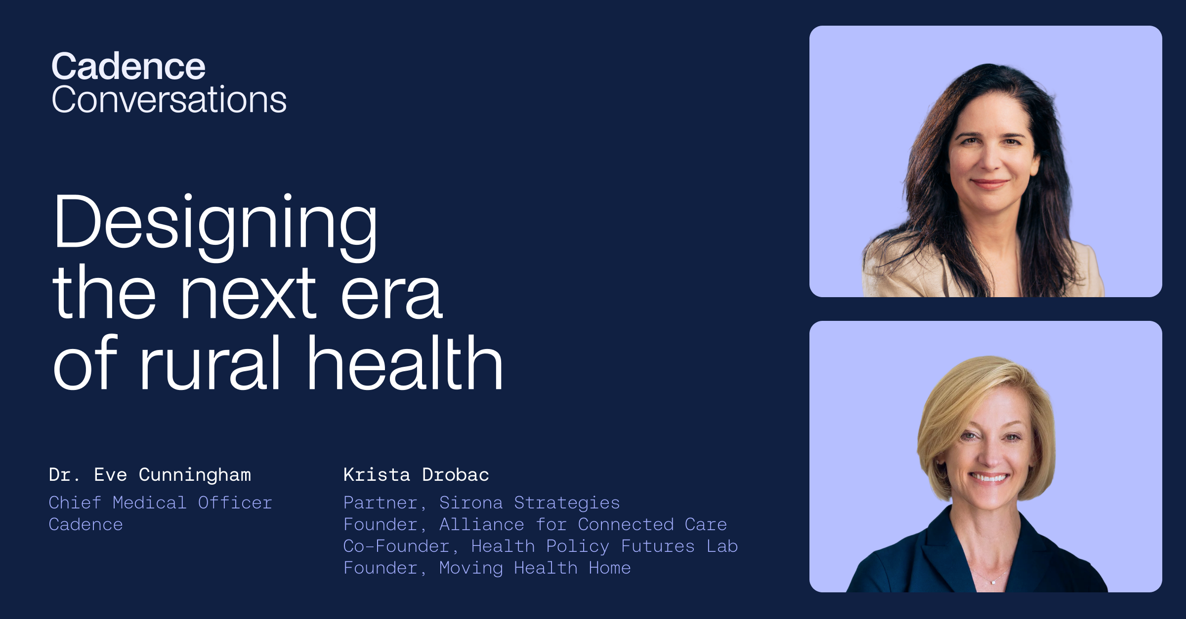 Krista Drobac, founder of the Alliance for Connected Care joined host Eve Cunningham, Chief Medical Officer at Cadence, in a conversation on how the Rural Health Transformation Program will converge policy, payment reform, and technology to share rural care delivery.