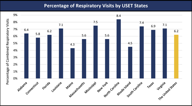 highlighted metrics from this week's USET TEC Weekly Area Seasonal Respiratory