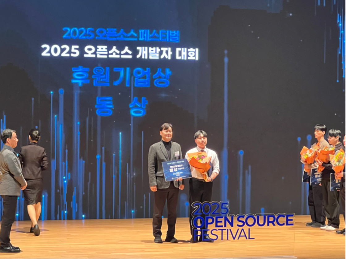 큐브리드는 올해에도 ’2025 오픈소스 페스티벌'에 후원사로 참여하여, 개발자 대회 시상식에서 수상 팀에게 상장과 상금을 전달 하였습니다.