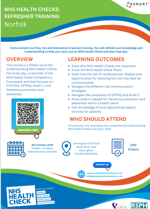 Participating GP practices - Great Massingham and Bayfield Surgeries and Drayton Medical Practice - have been inviting eligible patients to complete their NHS Health Check via the NHS App or online browser. For the blood pressure element of the check, the NHS Health Check Online directs the user to a nearby pharmacy that offers free blood pressure checks if they do not have a monitor at home.
