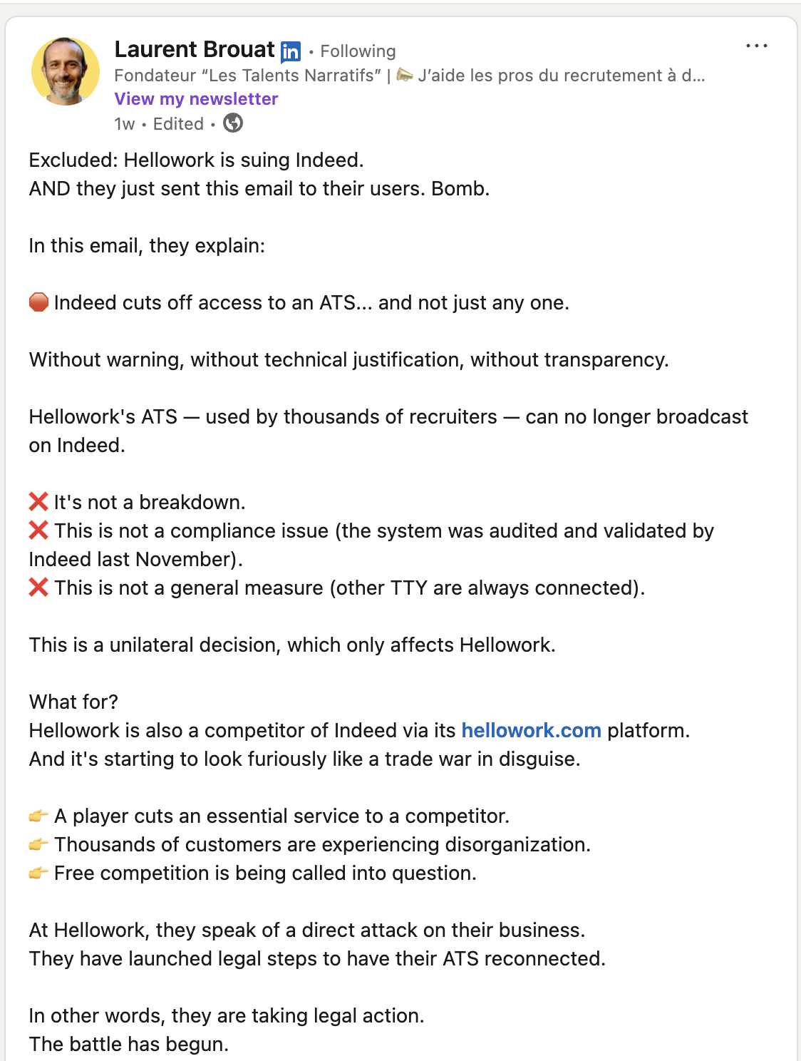 - HelloWork is taking legal action after Indeed takes a bigs swing at the French powerhouse.