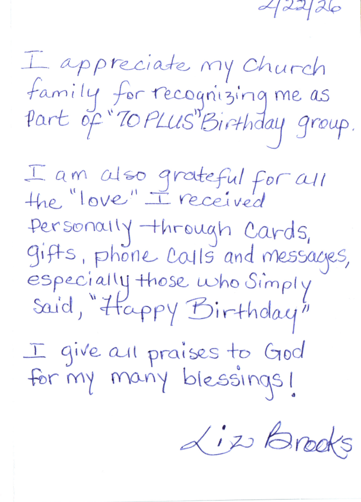 If you would like to volunteer in assisting with contacting members on the rare occasions when information needs to be communicated to the church membership quickly, please call the church and give your name and phone number.