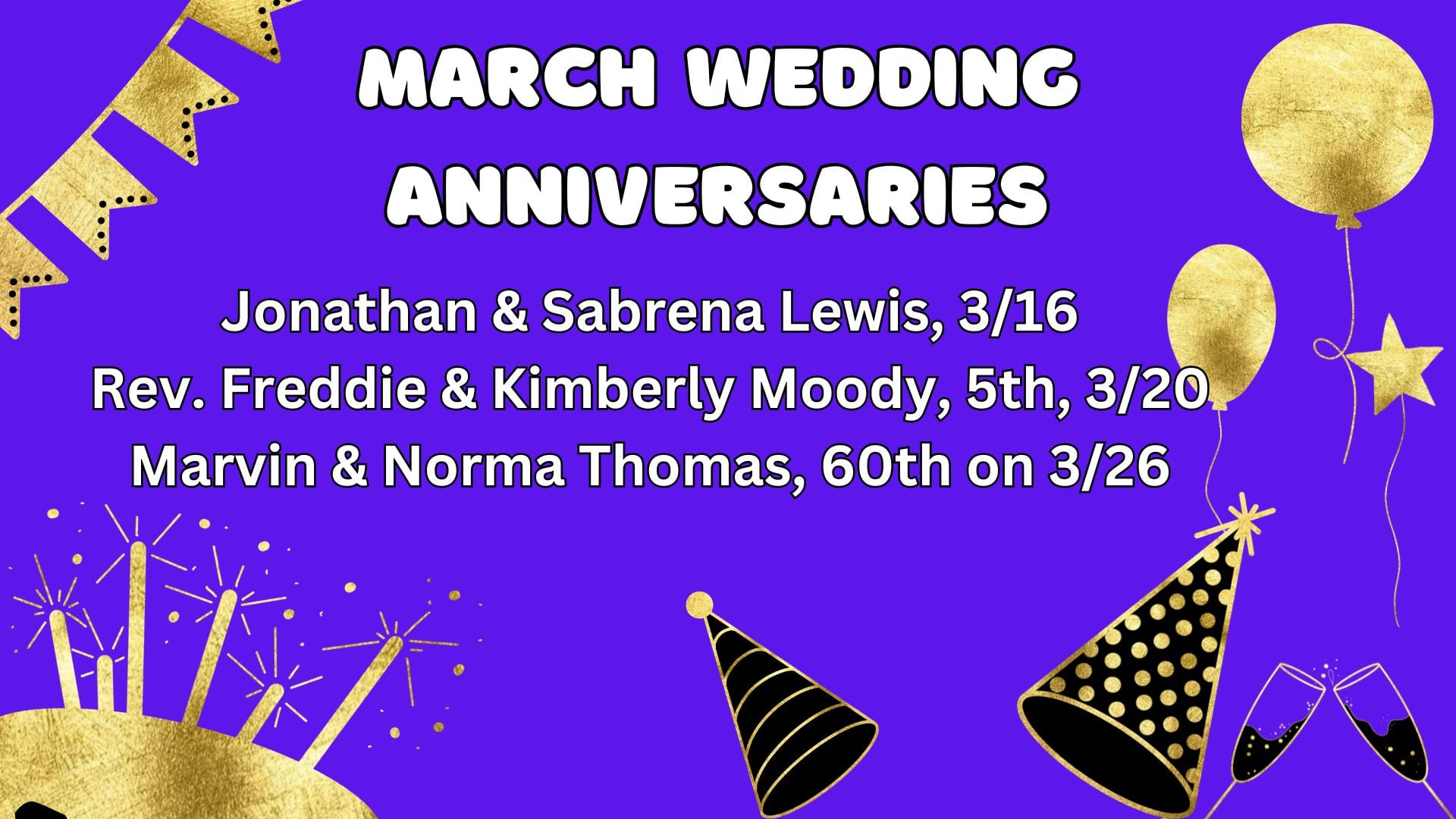 - Brother Charles Moore, Sr. (Denton, TX) (Brother of Sister Shelia Williams)