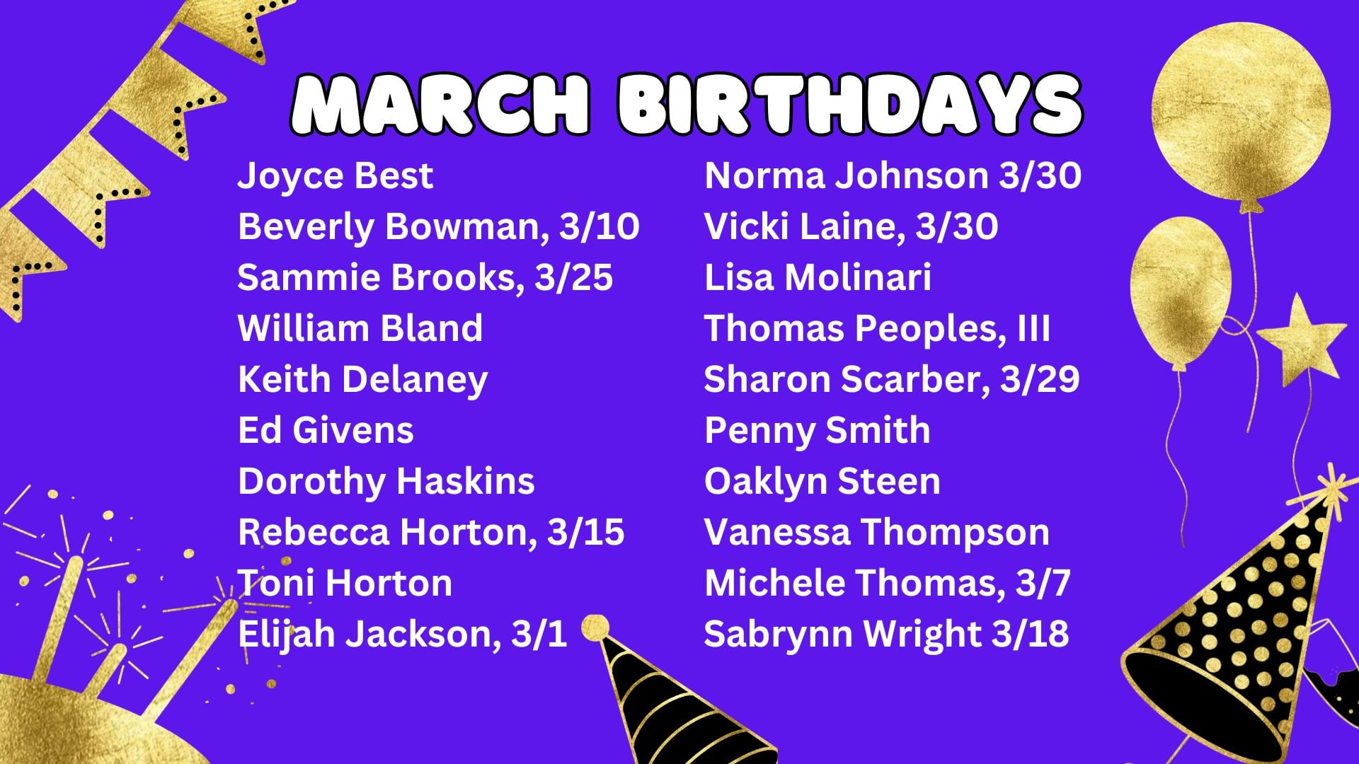 - Each person listed on our Sick List