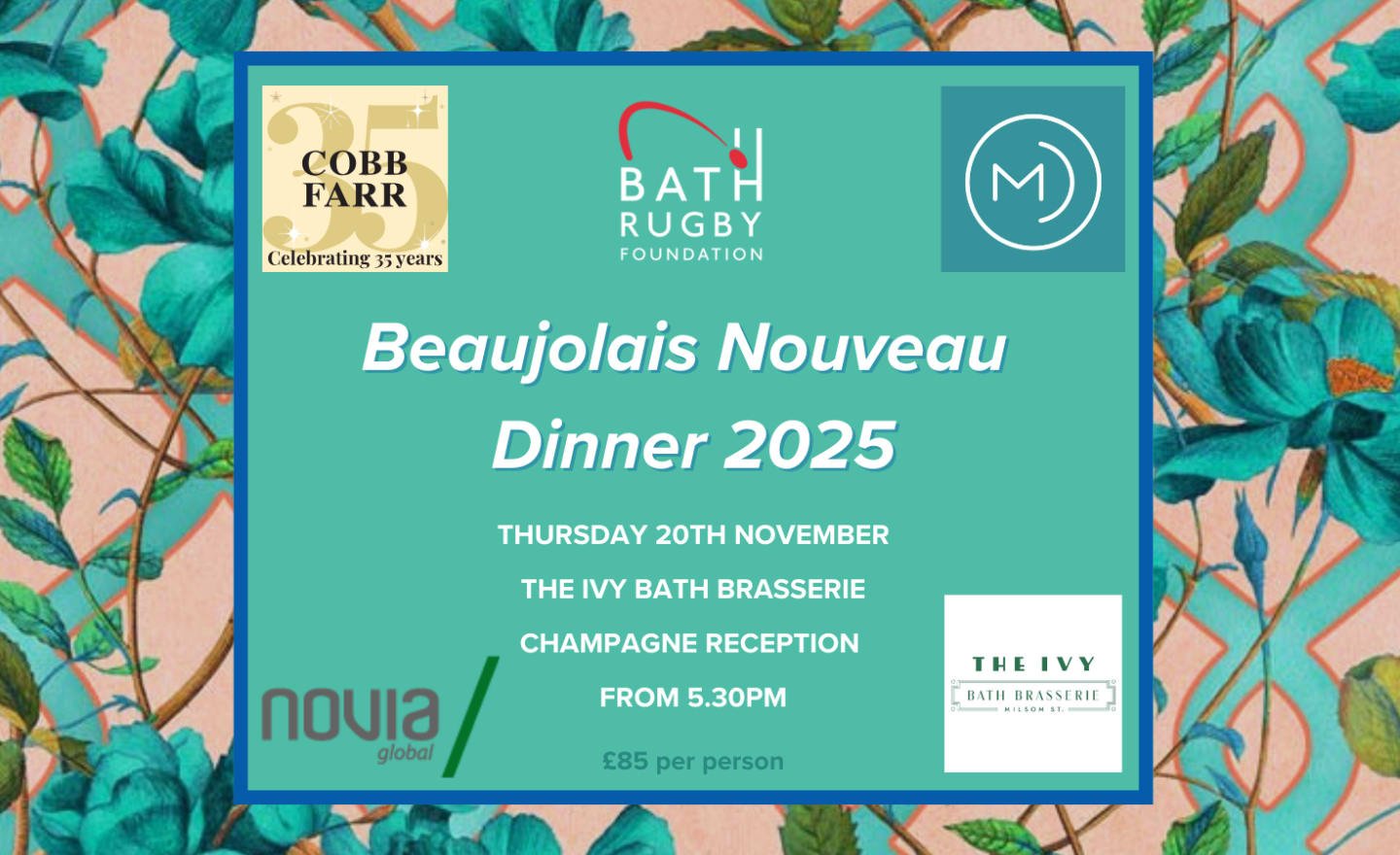 Hosted by Bath Rugby Foundation, in proud partnership with Cobb Farr, Mogers Drewett, The Ivy Bath Brasserie and Novia Global.