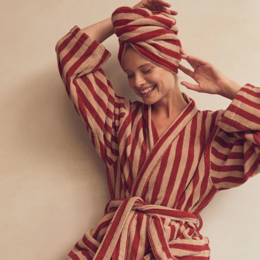 Sandstone Red Pembroke Stripe Cotton Robe, Piglet In bed | £69