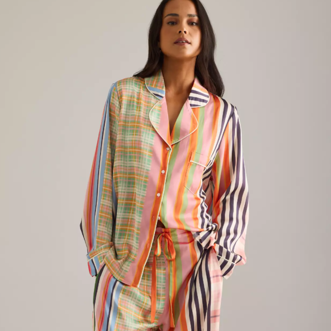 Karen Mabon Check Stripe Long Pyjama Set, Anthropologie | £160