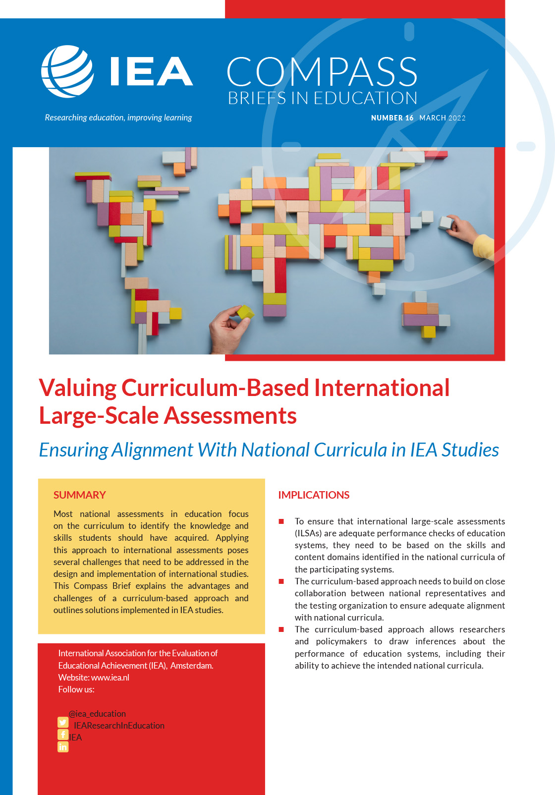 Most national assessments in education focus on the curriculum to identify the knowledge and skills students should have acquired. This Compass Brief titled, Valuing Curriculum-Based International Large-Scale Assessments, addresses the advantages and challenges of a curriculum-based approach in International Large-scale Assessments and outlines solutions implemented in IEA studies.