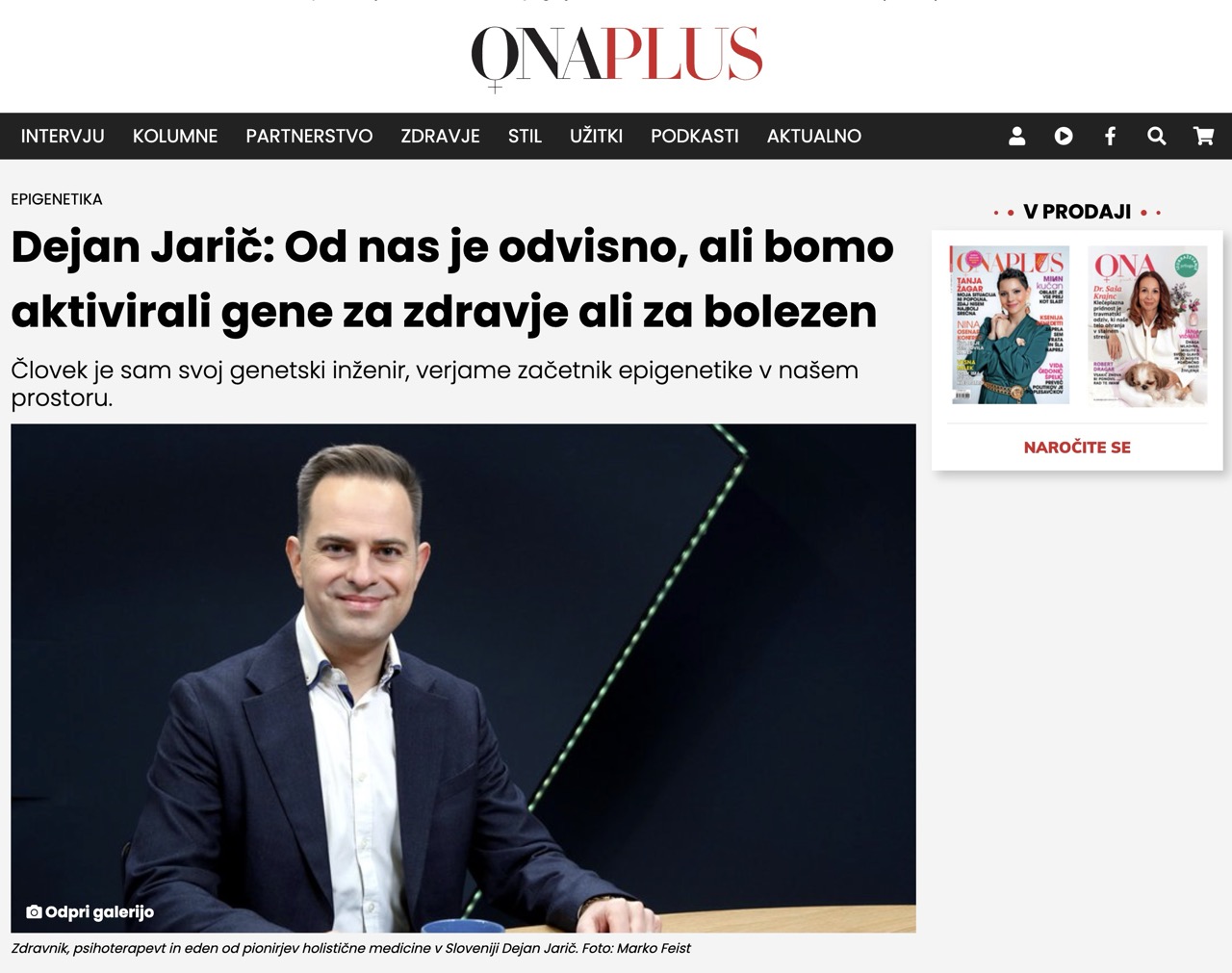 Hvaležen sem, da se ljudje odpirajo na celosten pogled na zdravje. Hvala vsem, ki ste se odzvali in delili posnetek naprej. Pred nekaj dnevi je bil izsek iz intervjuja objavljen tudi v reviji Onaplus, najprej v spletni, nato tiskani izdaji.