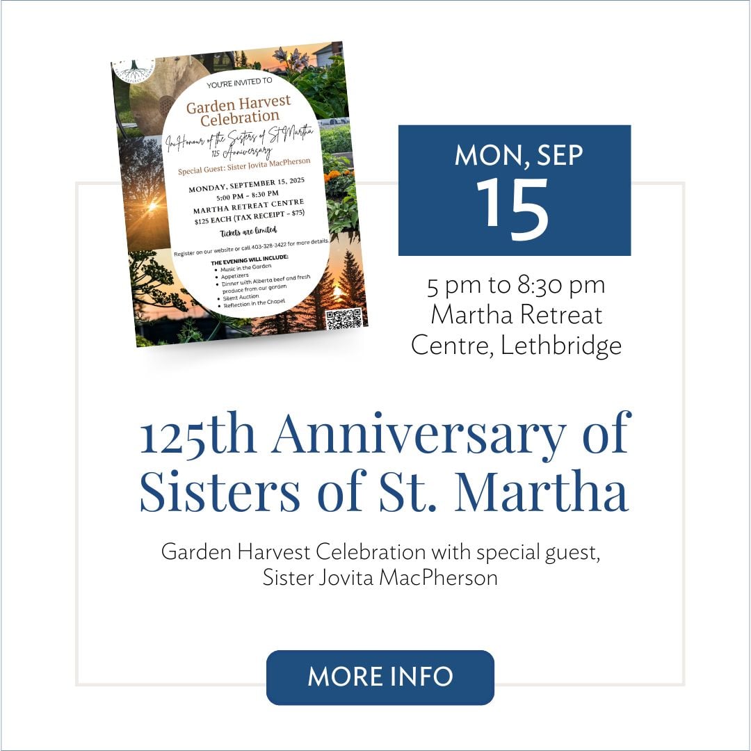 - NEW! Mon, Sep 15 - Sisters of St Martha's 125th Anniversary, Martha Retreat Centre, Lethbridge