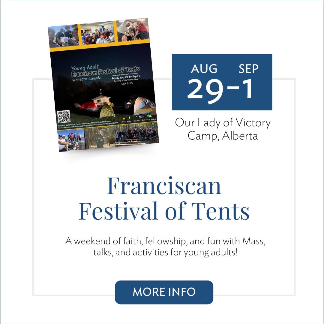 - Fri-Sun, Aug 29-Sep 1 - Young Adult Franciscan Festival of Tents - Our Lady of Victory Camp