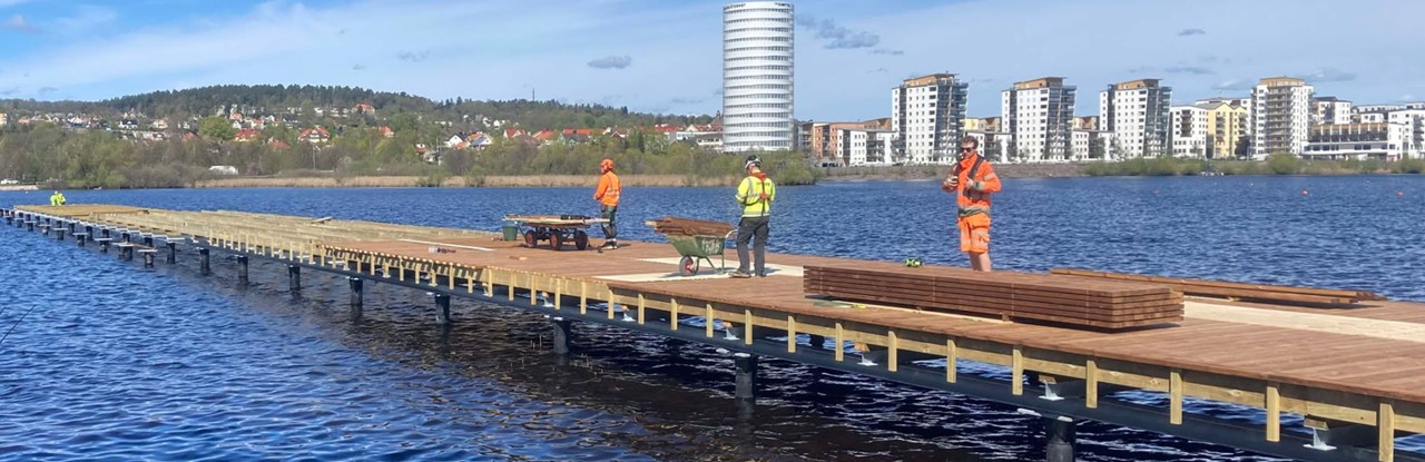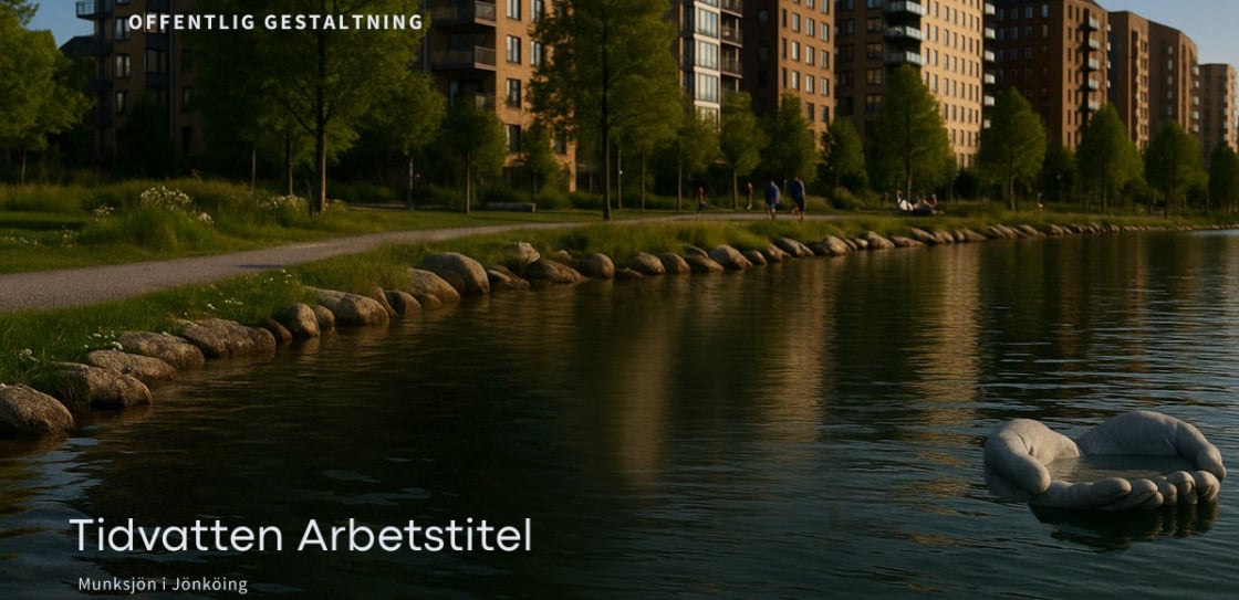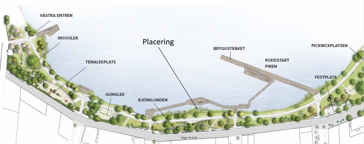 Arbetet med bryggan, som möjliggör fast start, går också enligt plan. På skissen ovan syns hur södra Munksjön kommer att se ut när arbetet är klart och nedan hur konstutsmyckningen kommer att vara. Vår arena kommer att bli unik i sin inramning.