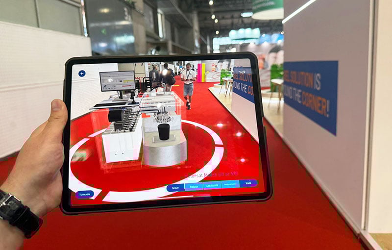 Augmented reality app simplifies integration of ink logistics A star attraction for converters and trade media at our Labelexpo stand was an augmented reality (AR)-powered app, that helps converters visualize how GSE dispensing hardware can best integrate into their own operations.