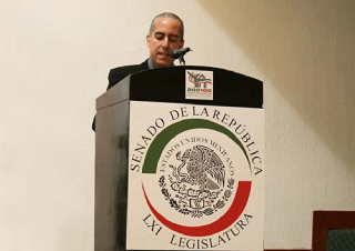 Adrian Reuter addressing the Mexican Senate during a review of the country's General Wildlife Law. © Juan Carlos Olmos, Conservación Sin Fronteras