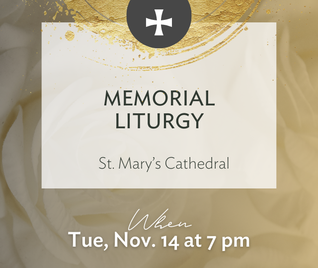 Tue, Nov. 14 at 7 pm, St. Mary's Cathedral | Join Bishop McGrattan in an annual prayer gathering to commend our children communally into the embrace of our merciful God and to support those who are grieving the loss of a child through miscarriage or stillbirth.