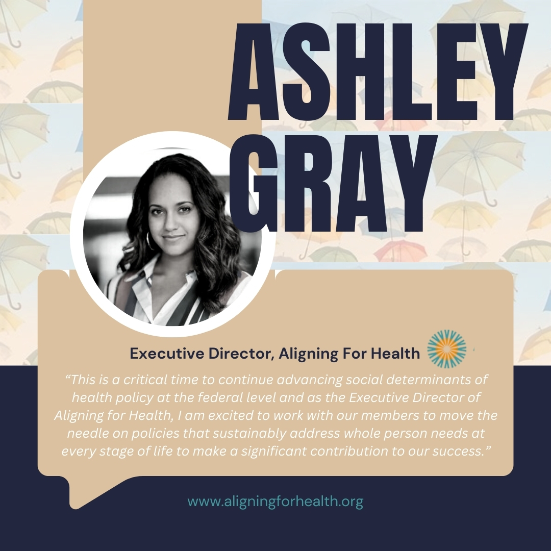 AFH is delighted to announce that Aligning for Health has a new Executive Director, Ashley Gray, who brings experience and energy to the cause of addressing social drivers of health.