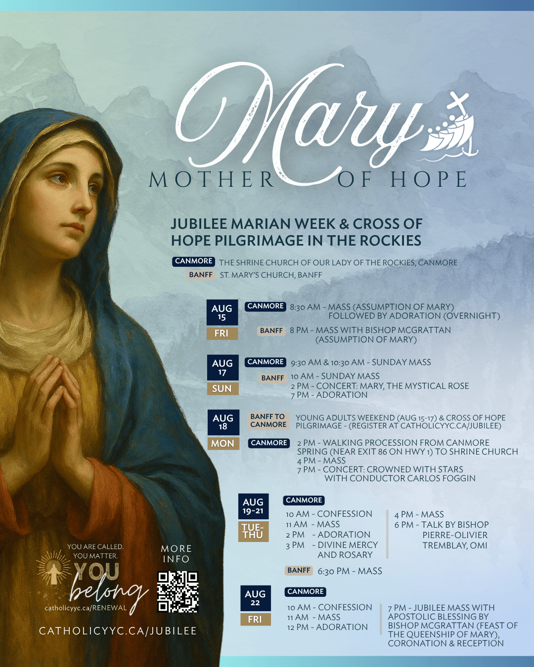 - Mon-Fri, Aug 18-22 - Mary, Mother of Hope: Jubilee Marian Week for All Pilgrims at the Shrine Church of Our Lady of the Rockies, Canmore