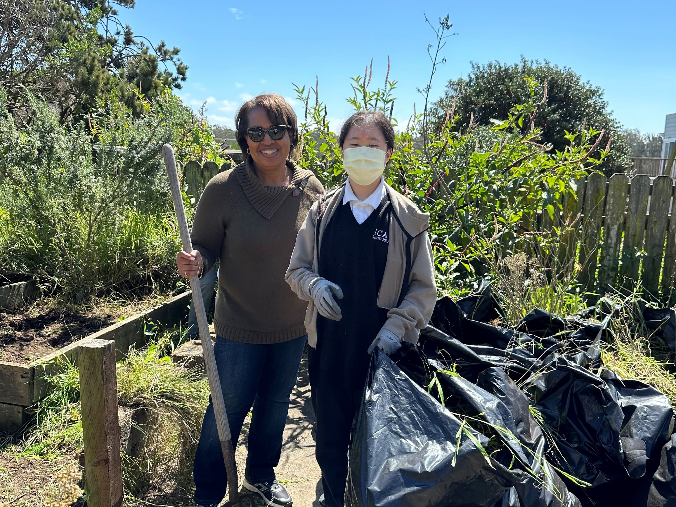 Junior student associate Bella Z. (‘25) rolled up her sleeves and dove into a day of greenery and goodwill. Together, Bella, Darlene Wilson, the Manager of Volunteer Services, and the team at Catholic Charities breathed new life into the gardens at San Francisco Boy’s & Girl’s Home program. Their efforts beautified the surroundings and created a restorative green space for the clients to enjoy.