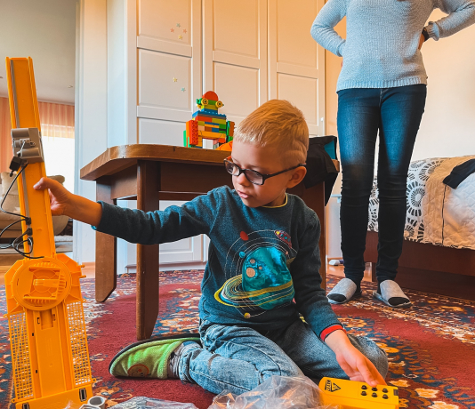 Džiugina tai, jog sunki diagnozė, dažniausiai, netrukdo berniukui mėgautis spalvinga vaikyste. Berniukas yra labai imlus konstravime – tuo metu, kol su mama šnekučiavomės, sudėliojo visą kraną!😊