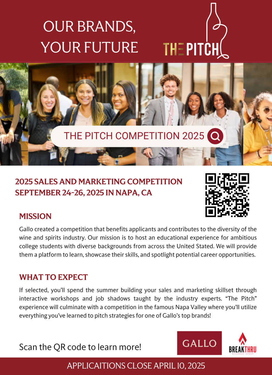 GALLO and Breakthru Beverage Group are partnering to create a competition that benefits participants and contributes to the diversity of the wine and spirits industry. Our mission is to host an educational experience for ambitious college students with diverse backgrounds from across the United States. We will provide them with a platform to learn, showcase their skills, and spotlight potential career opportunities. Students must be 21+.