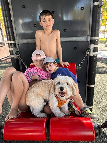 My gosh, the last month has been busy. We’ve enjoyed visits from many relatives and friends, while trying to keep up with our normal routine—not so easy to balance! I won’t bore you with most of it, except to share one photo of our delicious grandchildren. Lottie absolutely loved their energy and has been moping since they left.