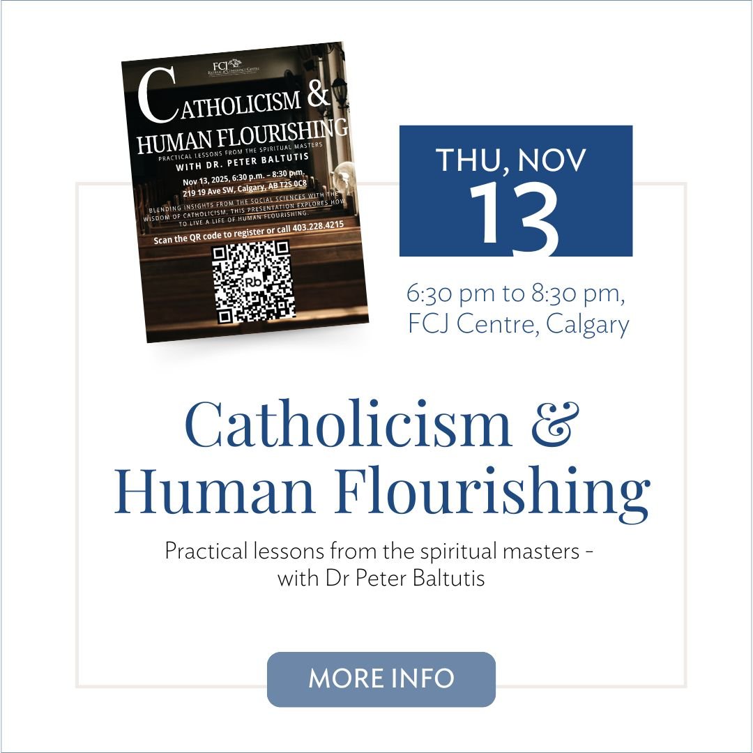 - Thu, Nov 13 - Catholicism and Human Flourishing with Dr Peter Baltutis - FCJ Centre, Calgary