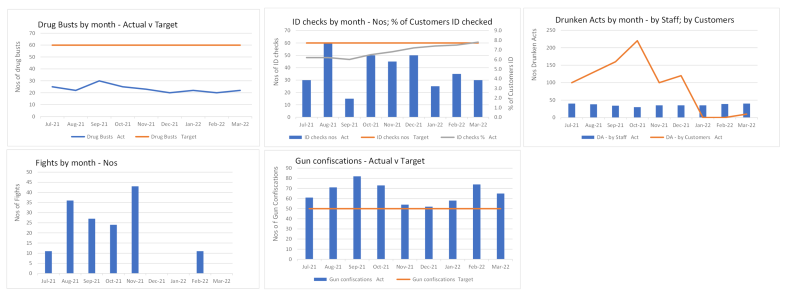 The graphs also lack detail – and hence lack repeatability (this email has more on this). Imagine you bump into bosses who ask: “The dashboard… anything of interest?”. You say: “Gun confiscations are down” – to which bosses say: “OK… by how much?”. You’re then left hanging in the wind. “Hmm… dunno”, you say – and then diffidently add: “Well, last month’s column was bigger than this month’s…”. Columns lack repeatability.