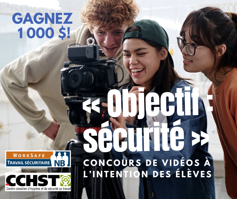 Notre concours de vidéos « Objectif : sécurité » à l’intention des élèves du secondaire de la province est de retour! Faites passer le mot et aidez à habiliter la main-d’œuvre de demain. Nous invitons les élèves du secondaire à réaliser une vidéo originale de deux minutes qui souligne l’importance de travailler en toute sécurité!