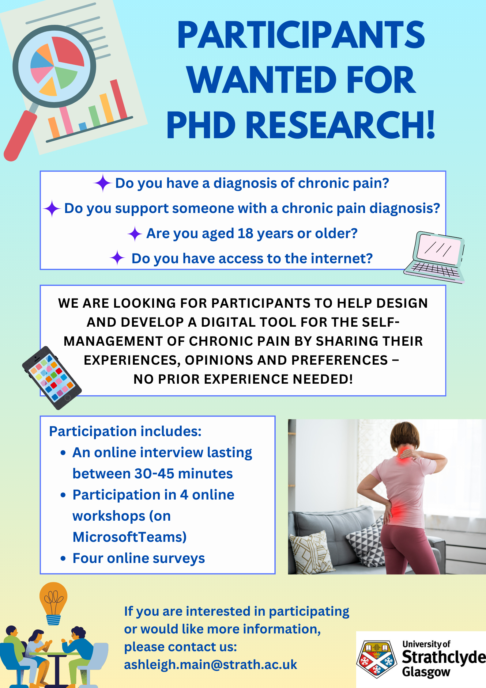 If you are interested in this research study or have any questions please contact Ashleigh at: Ashleigh.main@strath.ac.uk