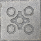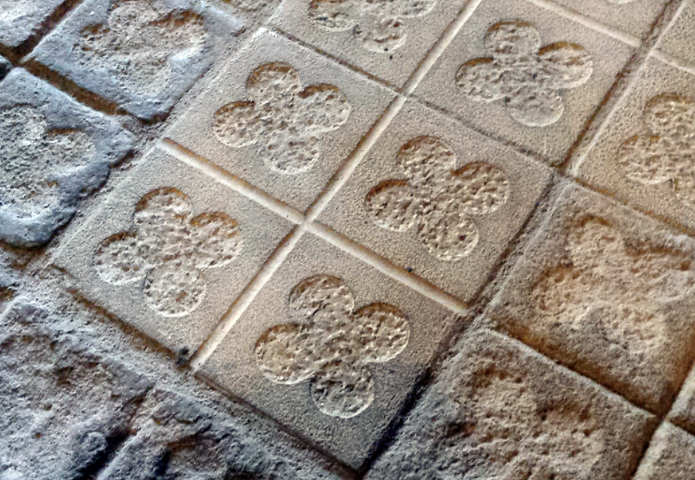 De enige plek waar vier van de vijf originele panot-ontwerpen samenkomen: de bloem, vier pastilles, vier pastilles met cirkel en de concentrische cirkels. |