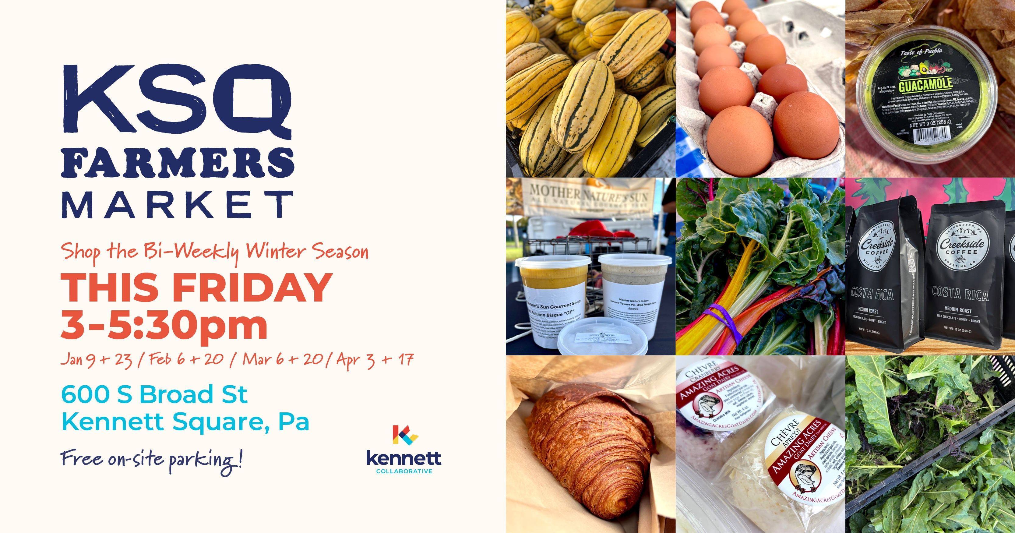 Find us in the south end of the parking lot at 600 S. Broad St, Kennett Square, PA.