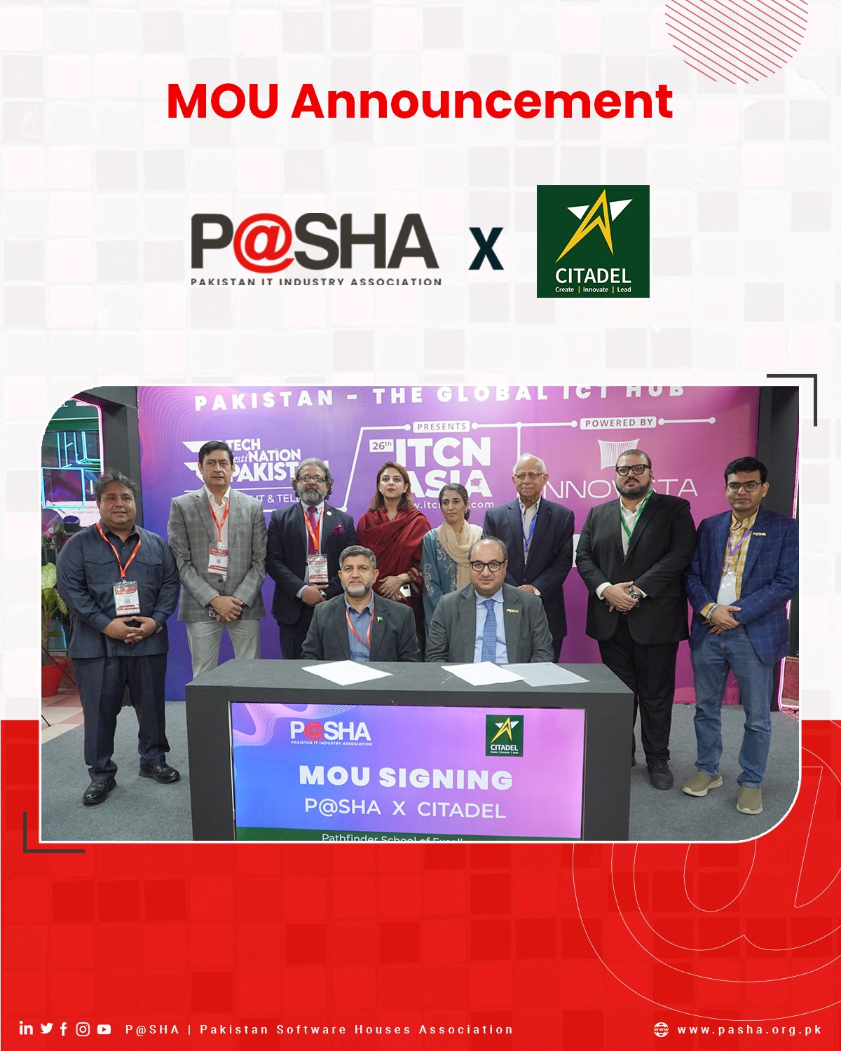 The MoU was signed in the presence of P@SHA leadership including Chairman Sajjad Syed, and representatives from CITADEL / Pathfinder SoE led by Mr. Ikram Sehgal.