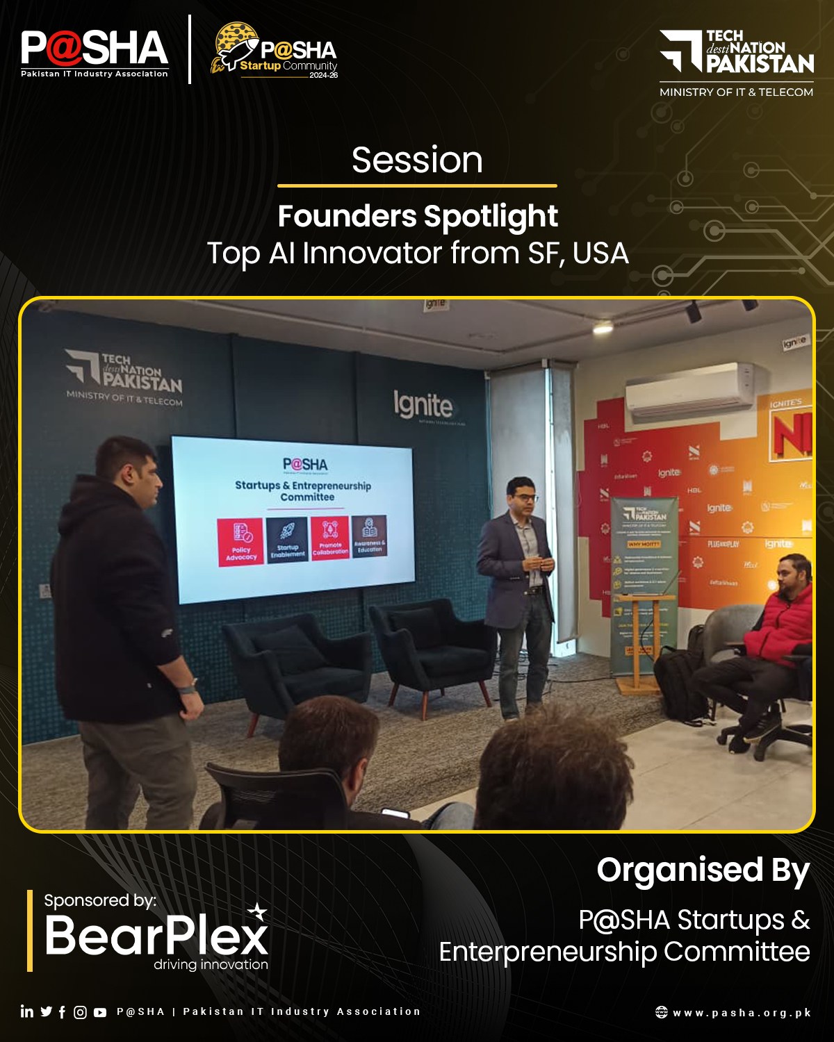 On December 17, P@SHA’s Startups and Entrepreneurship Committee hosted an exclusive members-only session with Ahmad Awais, Founder and CEO of Langbase. Chaired by Usman Akbar, the session brought together founders, CTOs, and tech leaders for in-depth discussions on AI product development, infrastructure, and tools, followed by an interactive Q&A. The event concluded with networking opportunities, supported by BearPlex as sponsor and National Incubation Center Lahore as venue partner, fostering collaboration and innovation within Pakistan’s tech ecosystem.