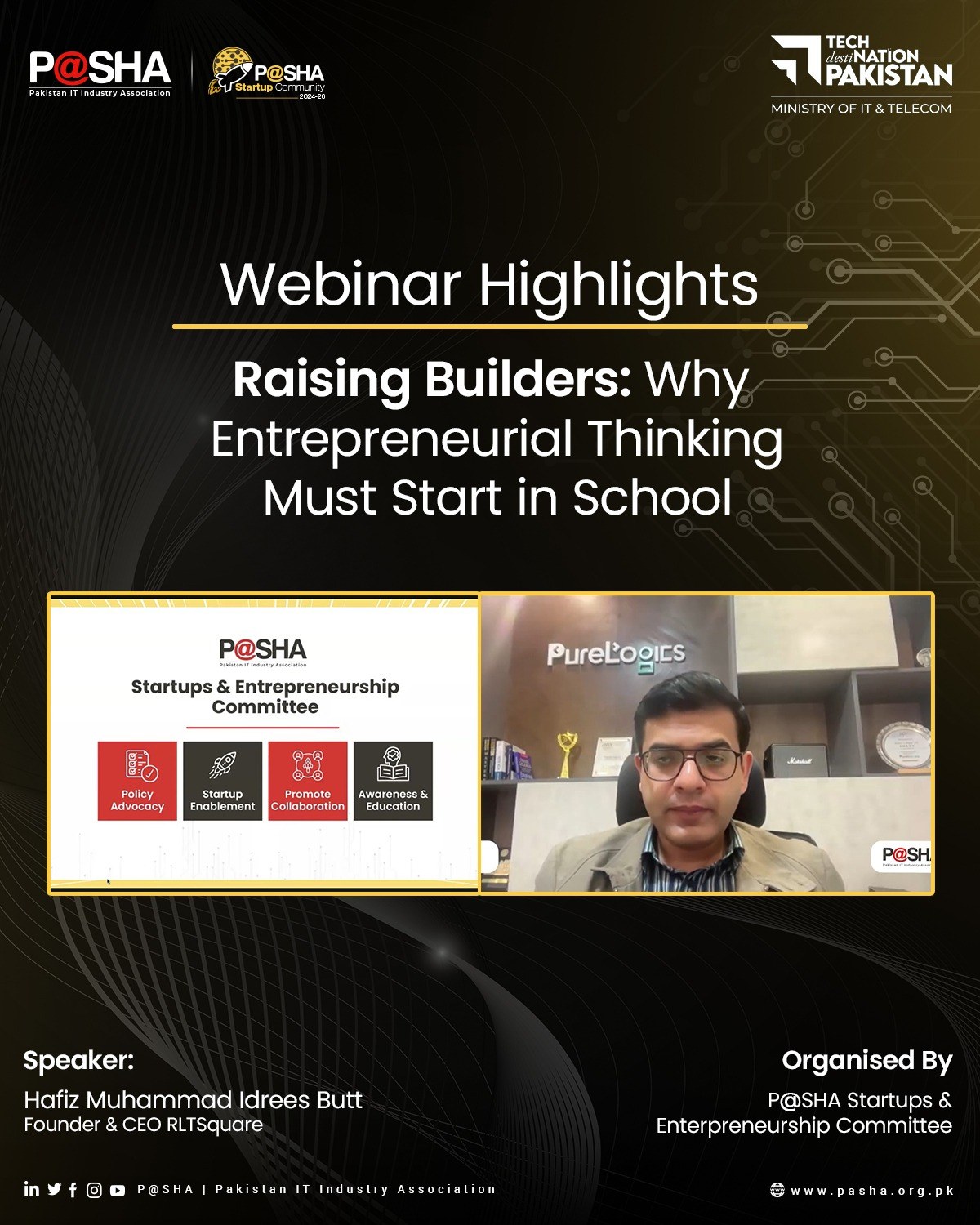 P@SHA’s Startups and Entrepreneurship Committee hosted the webinar “Raising Builders: Why Entrepreneurial Thinking Must Start in School,” led by Hafiz Muhammad Idrees Butt, Founder and CEO of RLTSquare, and hosted by Usman Akbar. The session engaged parents in discussions on preparing children for the future, emphasizing early exposure to problem solving, entrepreneurial thinking, and AI literacy. An interactive Q&A provided practical guidance on fostering confidence, creativity, and long-term growth beyond traditional education models.