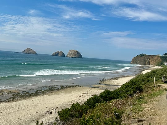 The headland trail provided several great spots to view the coastline. We didnât see any whales, but we did enjoy watching the waves while nibbling on cheese curds. Life is good.