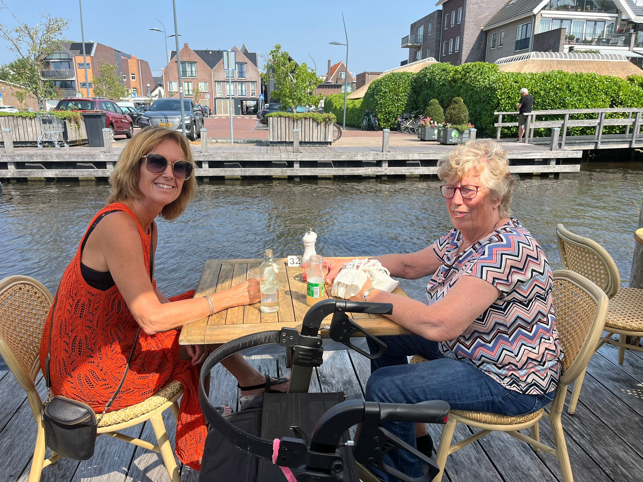 Langs het water, met een koel drankje in de hand, genoten Posidiva Angela en mevrouw Van Dijk samen van de zon.
