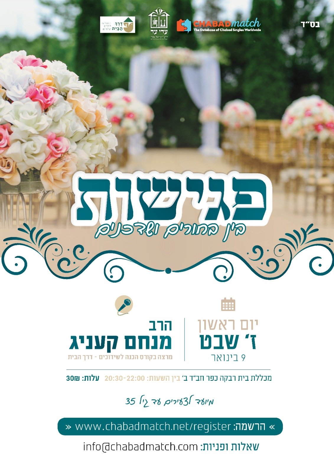 4) Shadchan Dassi Kramer relates: "I saw the Bochur's profile on ChabadMatch and based on his professional studies, I suggested a girl in a similar field. They went out and decided to take a break. After six months they tried again and got engaged!"