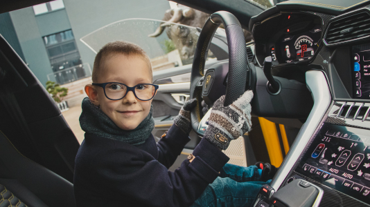 Tos didelės ir džiaugsmo kupinos akys! Ta nuostaba ir nuoširdi vaikiška šypsena pamačius tai, apie ką seniai svajojai! 🥰 Vos spėjome patys pagauti Ugnių, kuris su mama atvykęs į susitikimo vietą tiesiog nustėro – aplink sukiojosi ryškus geltonas Lamborghini!🚕🚀