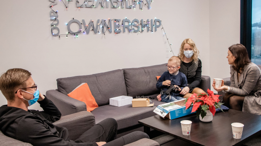 Labai džiaugiamės, kad kartu su fondo bendraminčiais Robertu ir Eduardu galėjome Ugniui paversti šią dieną ypatinga ir įnešti į jo gyvenimą tiek daug pozityvo! Šešiamečiui Ugniui nuo 2021m. kovo mėn. teko nemažai ištverti. Tuo metu šeima pastebėjo, jog suprastėjo berniuko regėjimas. Nuėjus pas oftomologą nustatė aftigmatizmą ir pasakė, kad nesimato aiškių akies nervų ribų. 2021 birželį padarė magnetinį rezonansą ir paaiškėjo, kad ant akies nervo yra navikas. Pradėta chemoterapija, o po pakartotinio tyrimo džiugių naujienų nebuvo. Tuomet buvo pakeisti chemoterapijos vaistai, o regėjimas dešine akute pasidarė labai minimalus.