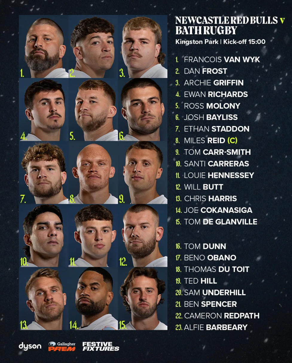 In the first of three Festive Fixtures over the next three rounds, Bath Rugby take on Newcastle Red Bulls at Kingston Park on Sunday (15:00).
