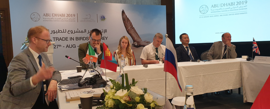 IAF put together, in collaboration with the ADIHEX organizers, the Emirates Falconers’ Club, and the International Fund for Houbara Conservation. Also taking part were speakers from the IUCN; the CMS and Bern Convention Intergovernmental Task Force on Illegal Killing, Taking & Trade of Migratory Birds in the Mediterranean; the Ornithological Society of the Middle East, Caucasus & Central Asia (OSME); Birdlife International (Middle East region), the Royal Society for Nature Conservation, Jordan; FACE and scientists/conservation experts from the UK, Russia, Mongolia and Hungary.