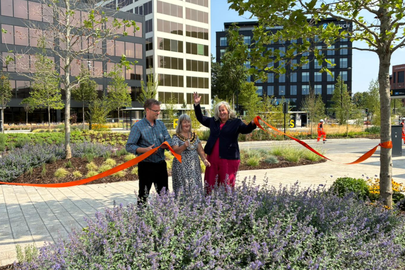 After observing the two-minute silence to mark VJ Day, those in attendance boarded a bus to experience the new road layout before Swindon Mayor, Councillor Fay Howard, cut a ribbon to unveil the road, accompanied by Heidi Alexander, Swindon South MP, and Councillor Chris Watts, Cabinet Member for the Environment and Transport.