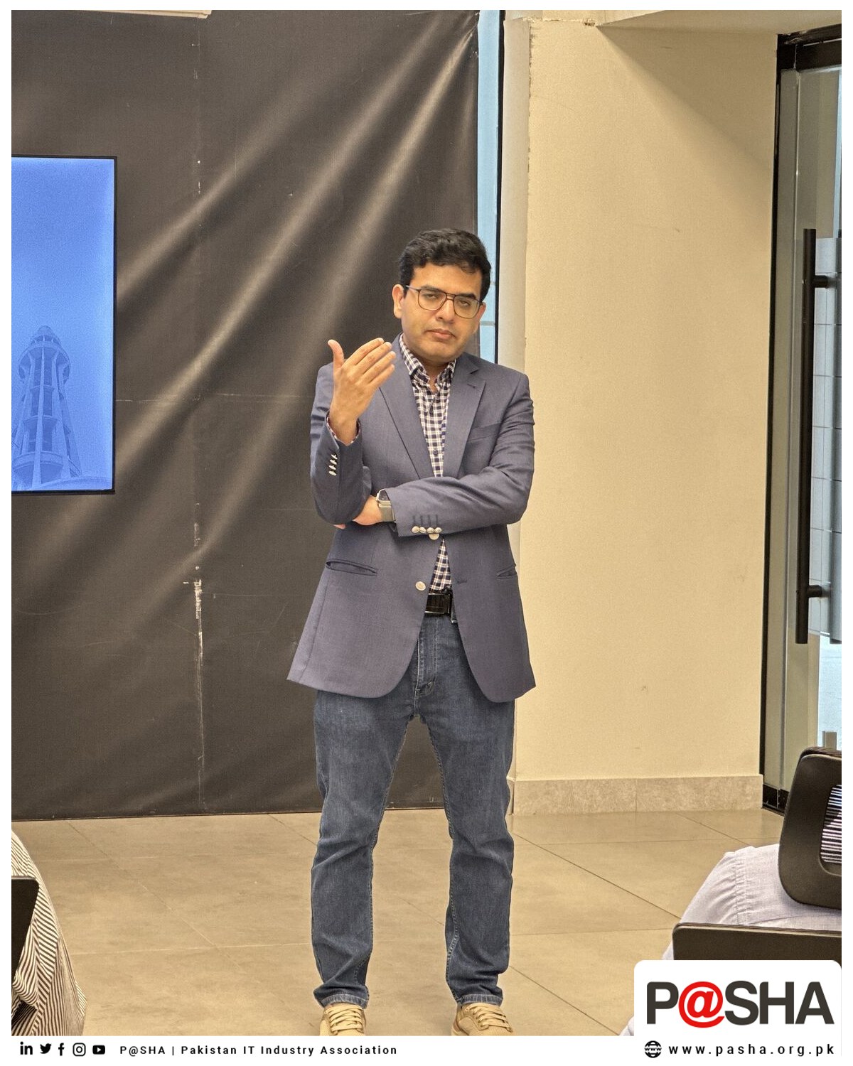 Mr. Usman Akbar, Chair of the P@SHA Startups & Entrepreneurship Committee, hosted and guided the session, setting the stage for a meaningful exchange of ideas. The keynote was delivered by Mr. Aly Fahd, Founder of Paklaunch, who shared his personal journey and practical strategies for building fundable and scalable startups.