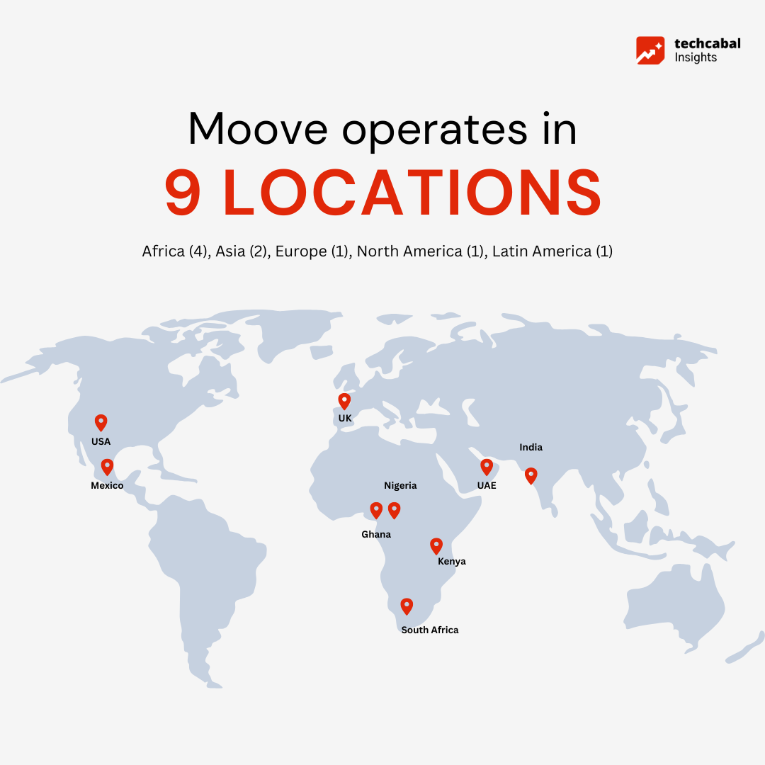 Moove is available in 9 locations across the globe. Chart by Margaret Awojide