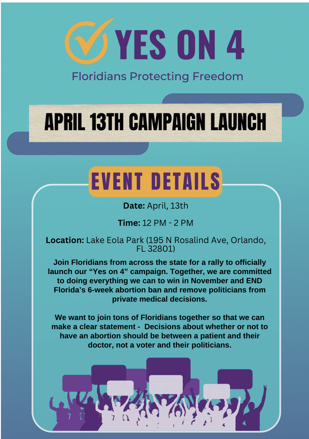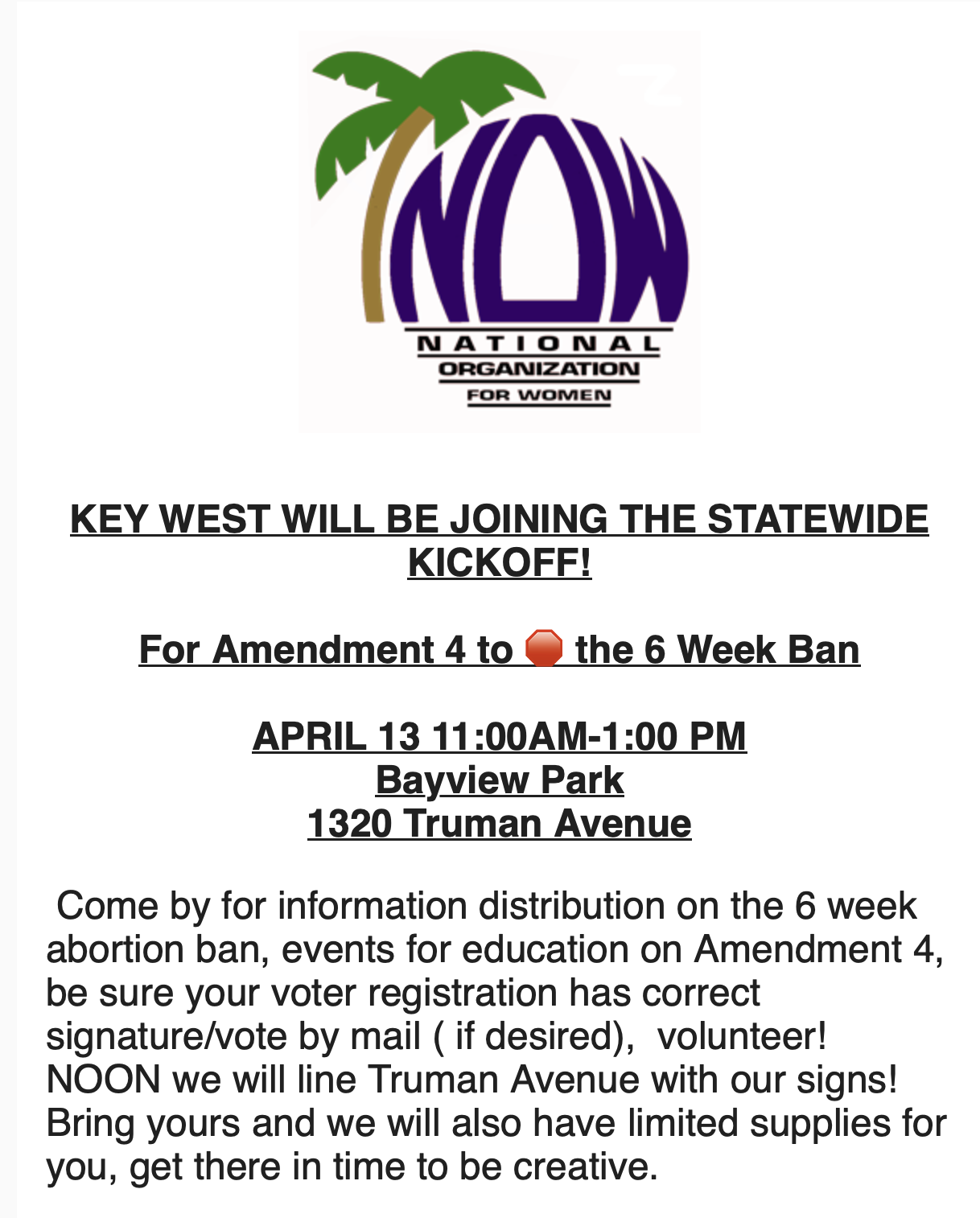 So many of you are coming up to Orlando for the 6-week abortion ban protest and to rally to get out the vote for Amendment 4 on April 13. Thank you. We need this protest and rally to be huge! They have over 1000 people registered so far. Hopefully, most of them will come and we will have many coming that didn’t take the time to register. It will be a success no matter what because the attendees will make it so.