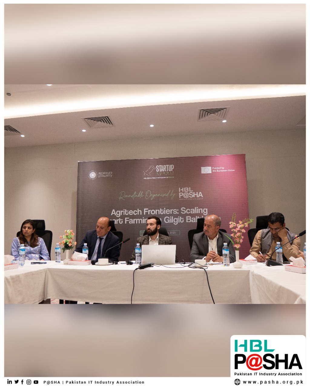 HBL P@SHA hosted a high-impact roundtable on the future of smart farming in Gilgit Baltistan titled “𝐀𝐠𝐫𝐢𝐓𝐞𝐜𝐡 𝐅𝐫𝐨𝐧𝐭𝐢𝐞𝐫𝐬: 𝐒𝐜𝐚𝐥𝐢𝐧𝐠 𝐒𝐦𝐚𝐫𝐭 𝐅𝐚𝐫𝐦𝐢𝐧𝐠 𝐢𝐧 𝐆𝐢𝐥𝐠𝐢𝐭 𝐁𝐚𝐥𝐭𝐢𝐬𝐭𝐚𝐧” at the Start-up Summit organized by Accelerate Prosperity - An AKDN Initiative. The event brought together AgriTech startups, policymakers, researchers, and development partners to explore innovation-led solutions for one of Pakistan’s most promising yet underserved regions.
