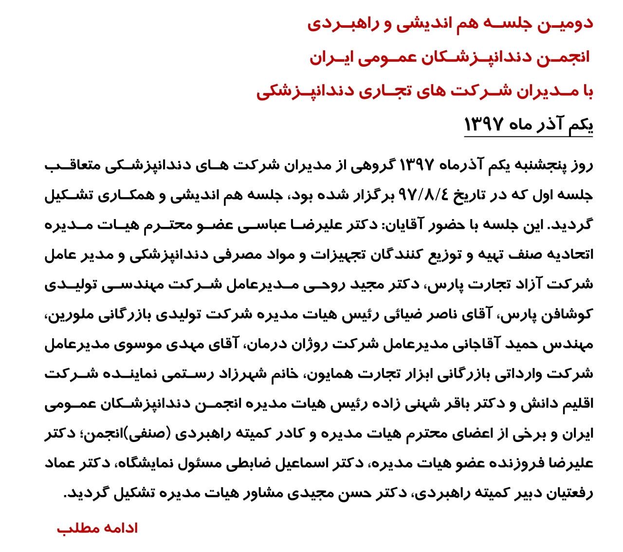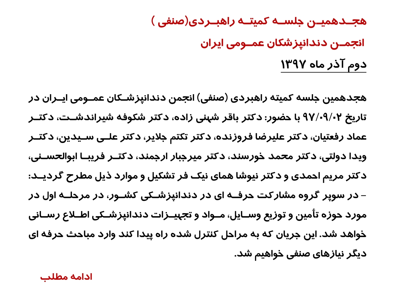 اطلاعیه های انجمن دندانپزشکان عمومی ایران