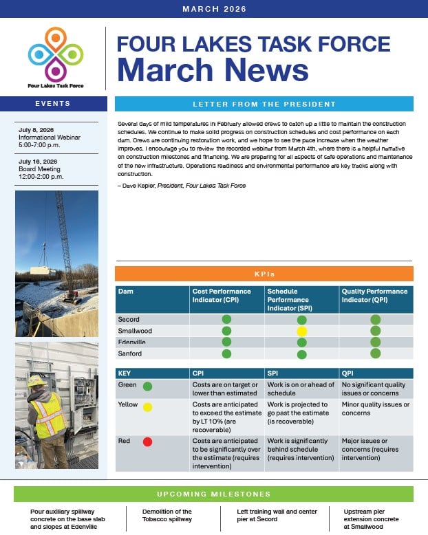 In preparation for the lake's refill in the coming months, FLTF published a resource page on the website with best management practices for your shoreline. On the resource page, you'll learn about shoreline natural design, woody habitat structures and stormwater control. Learn how you can create a healthy shoreline to protect your property and the lake.